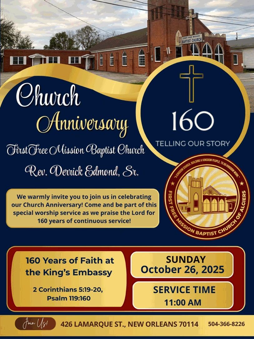 We are located in the great city of New Orleans, Louisiana and God has blessed us to serve this city, state, and nation since 1863. It is by God´s divine order that you have "clicked" on to this site. If your church is not a part of an Association in our city or state, please contact us and a representative will return your call.